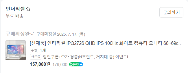 인터픽셀 27인치 QHD 모니터 IPQ2726 를 구매했습니다.
